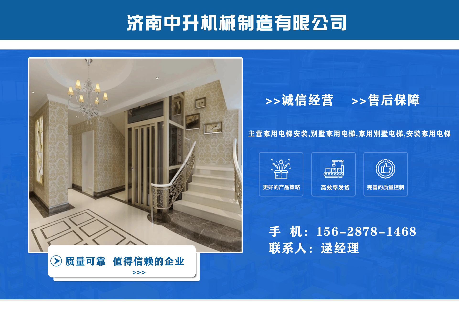 濟南中升機械制造有限公司主營家用電梯安裝,別墅家用電梯,家用別墅電梯,安裝家用電梯等業(yè)務,質(zhì)量可靠,值得信賴! 公司為客戶提供免費上門測量,根據(jù)實際情況1對1服務,保障符合用戶需求,終身提供售后服務,讓用戶買的舒心用的放心。匠心團隊,打造信賴產(chǎn)品,我們有團結(jié)、奮進拼搏的匠心團隊,為您提供可信賴的品質(zhì)保證?! 膭?chuàng)立以來一直嚴格執(zhí)行質(zhì)量管理體系、環(huán)境管理體系等相關標準管理體系,“顧客滿意”是我們始終如一的追求。我們有屬于自己培養(yǎng)的安裝隊伍,24小時服務電話,為您提供可靠的服務與支持。 我們的愿景是建設國內(nèi)具有影響力的電梯公司,做城市美好空間的好伙伴。...